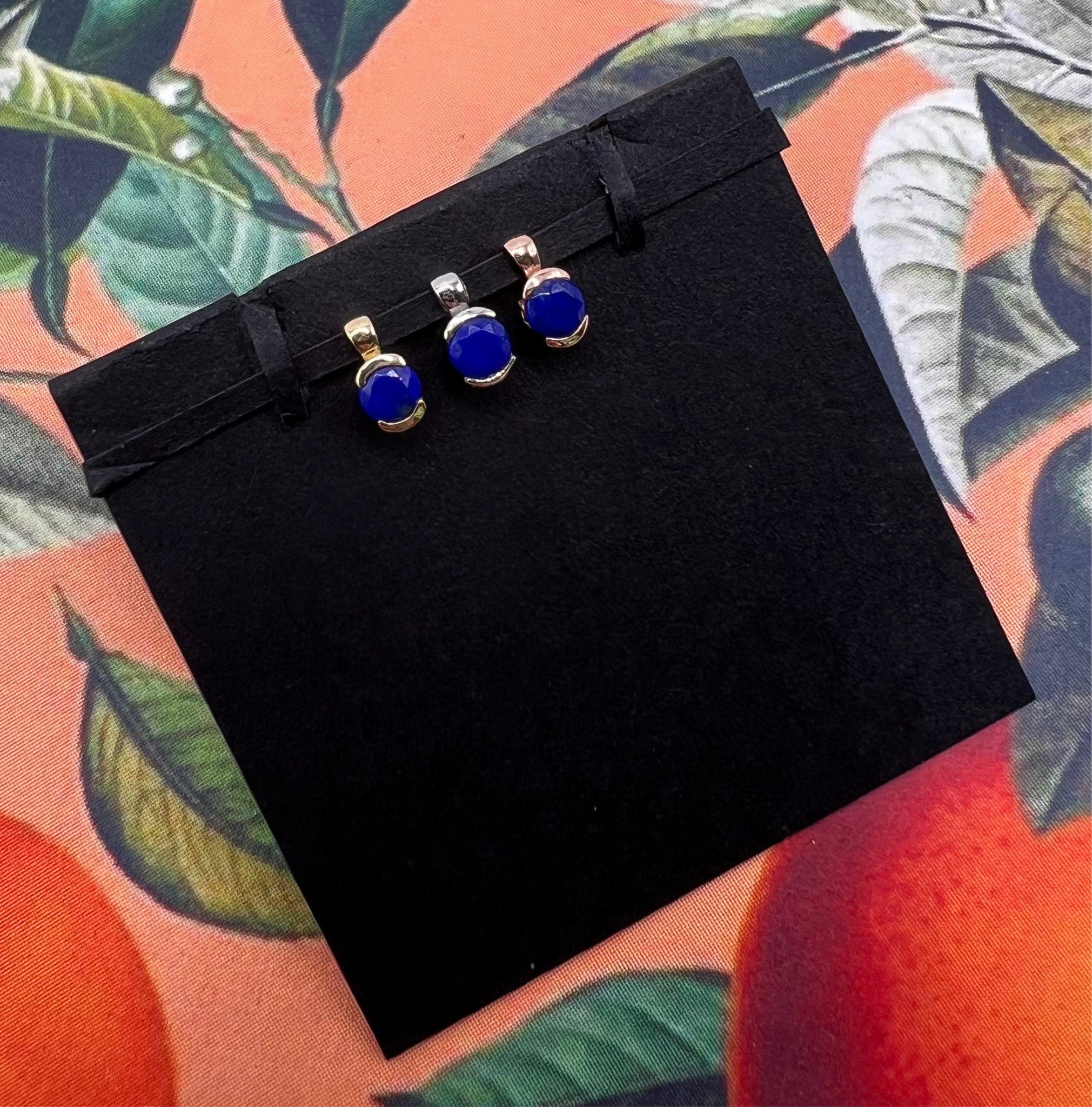 This charm is a 3mm Faceted Genuine Lapis Set in a partial bezel to show off the sides of this stone. Available in all 3 14k Golds and fit up to 16g. This is a side facing Charm!