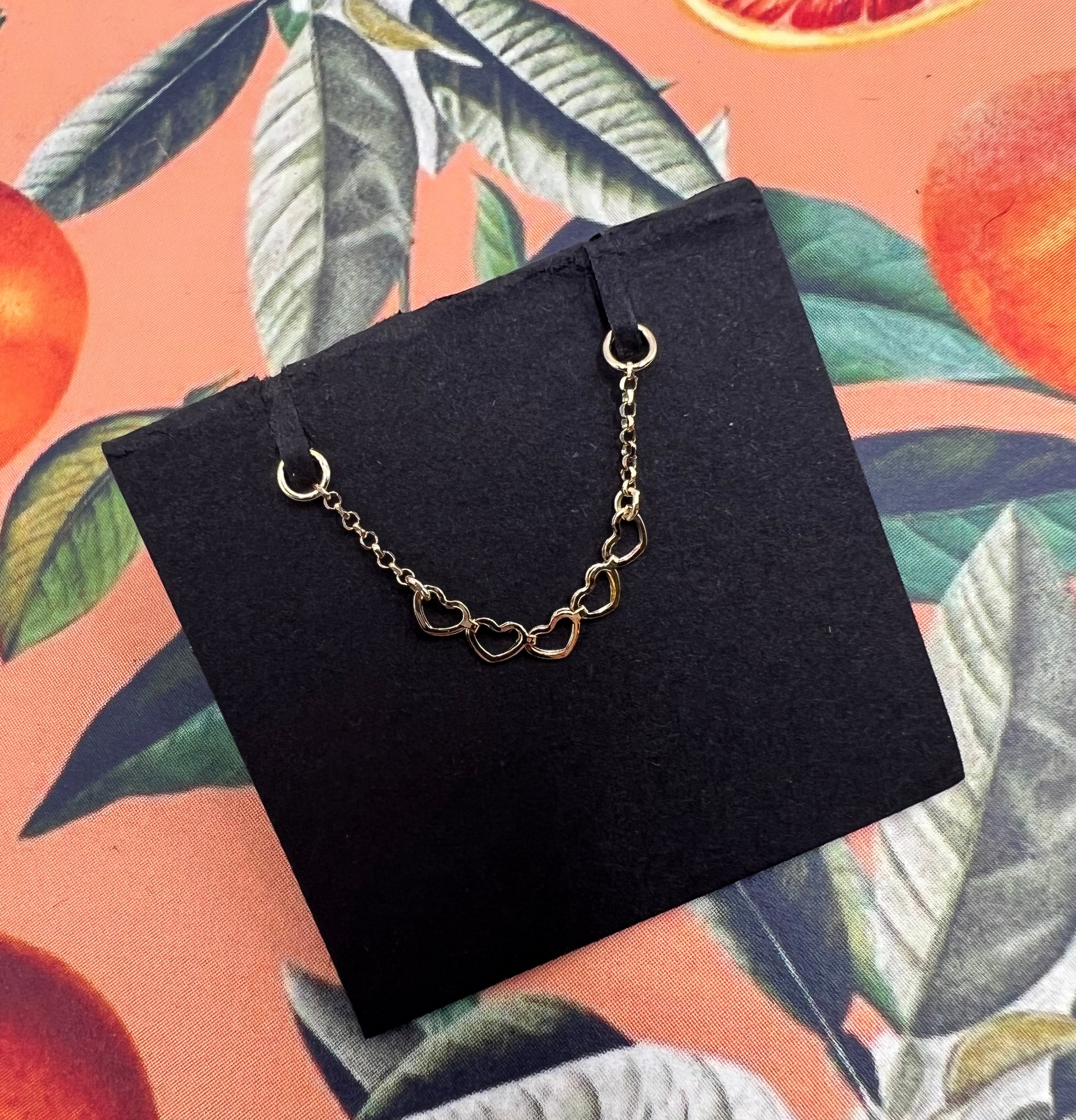 This chain is a little spin off of the well loved Barracuda Chain. So to add to its versatility we came up with the option to move where the heart design and where it rests in the chain. Center Fit sounds just like it is…the 5 hearts will rest directly in the middle of the chain. The Side fit option is just as is. The 5 hearts will rest to the side of the chain. It will work for either side needed by flipping the chain.