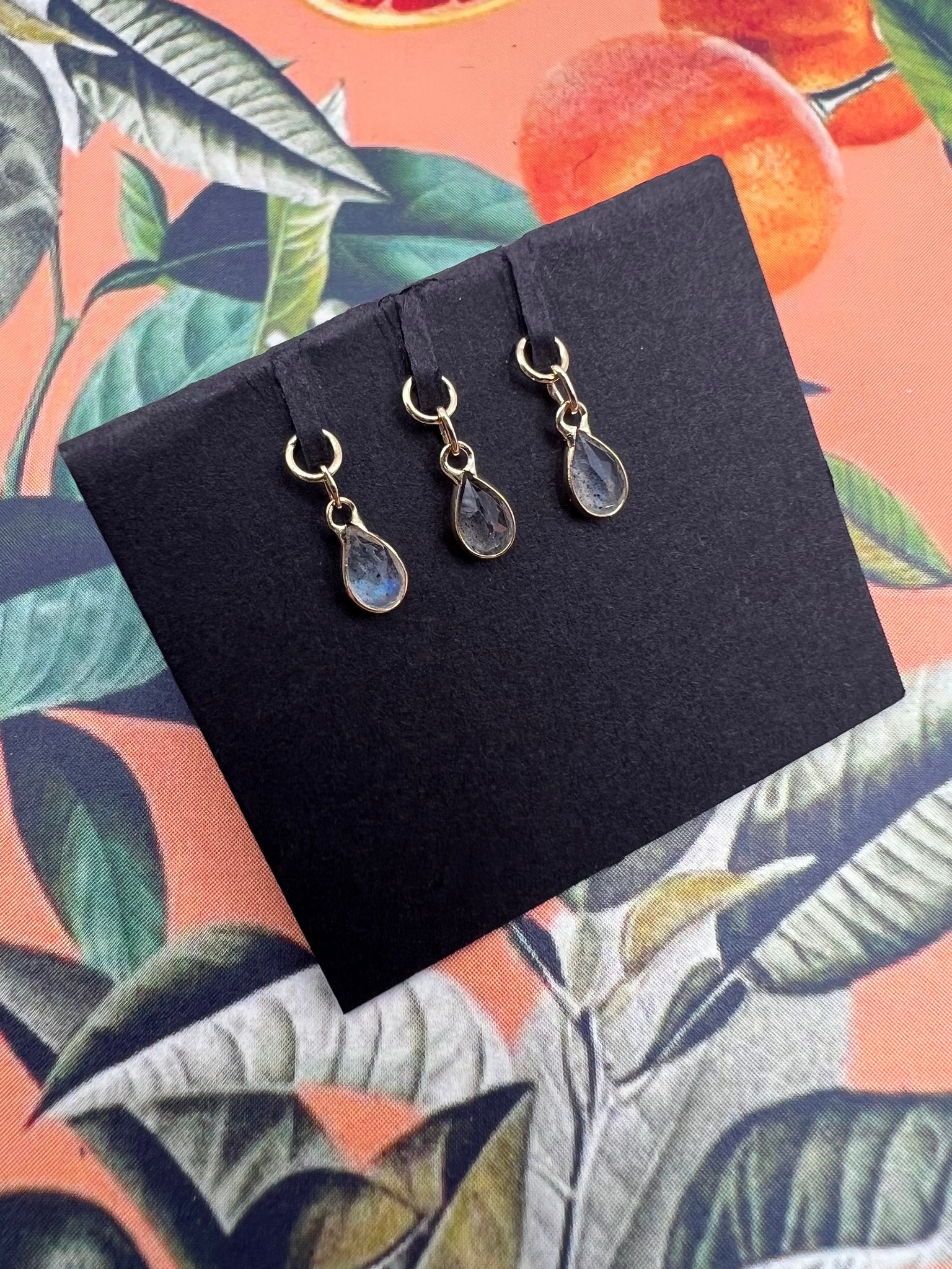 This Gem Charm is a lot like the Fresca Charm we have. These charms are 3x5mm Pear Cut and made from 14k Yellow Gold and fit for a 16g something. All gemstones are natural.