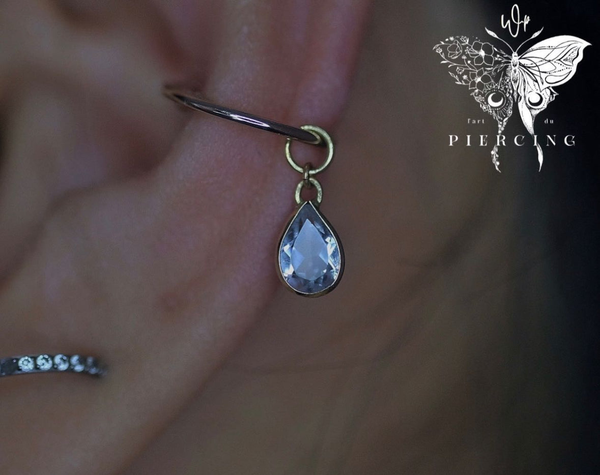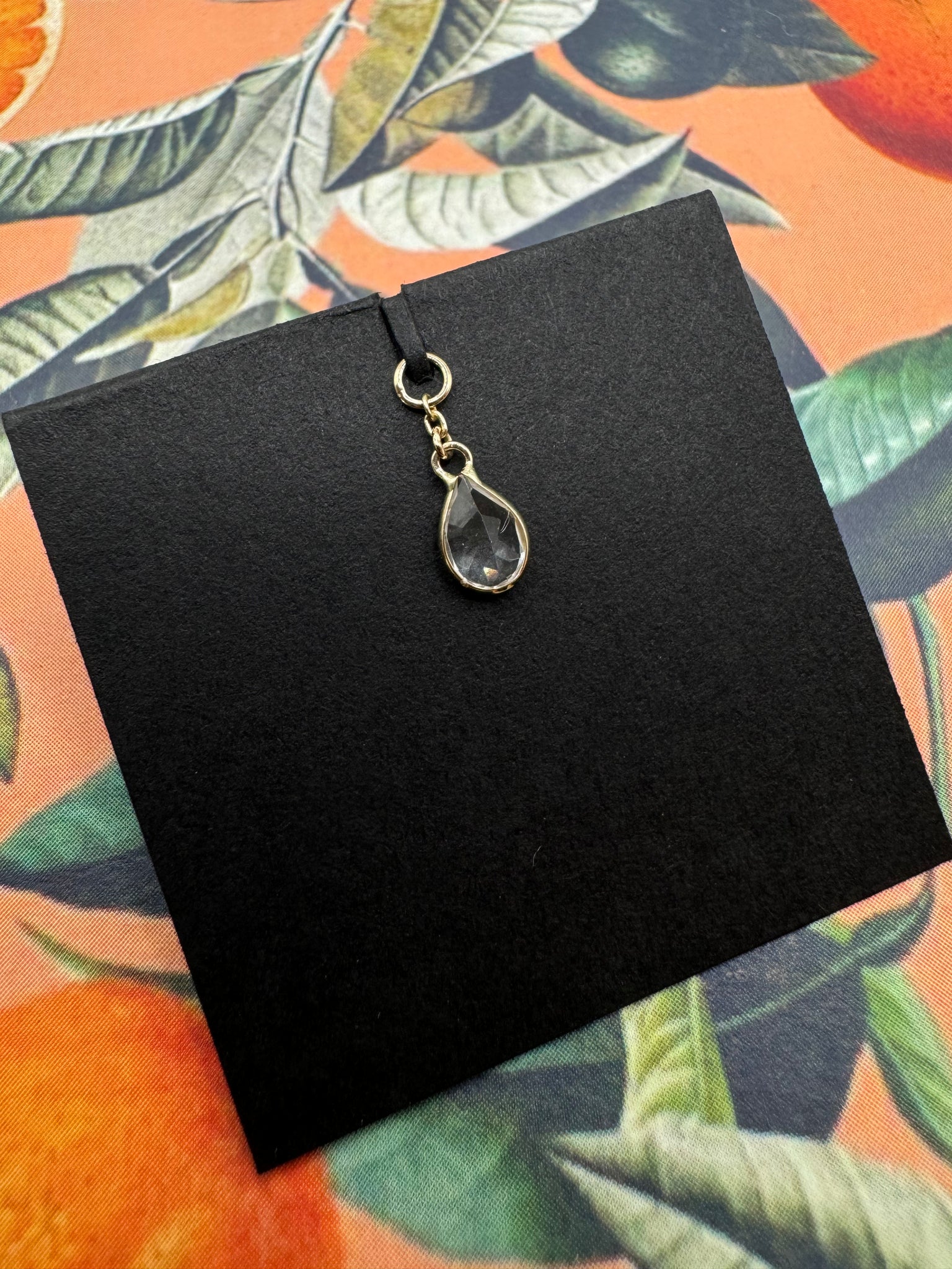 This is a great charm for seam rings or existing piercings. These are 4x5mm Pear Cut Gem Charms. Available in Yellow and White 14k Gold and on 16g jumprings!