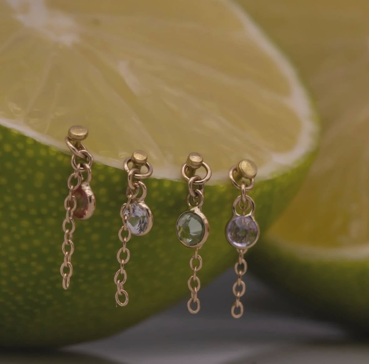These little charms are such a perfect representation of its name. We started with chains, blew up with gem charms and grew up with style. Here we are the Future, Past and Present Charms made from 14k Yellow Gold and are 2.5mm Brilliant Cut Gemstones. These charms are 8mm long not including the jump ring. The Chain on this piece is the 1.2mm Cable Chain.