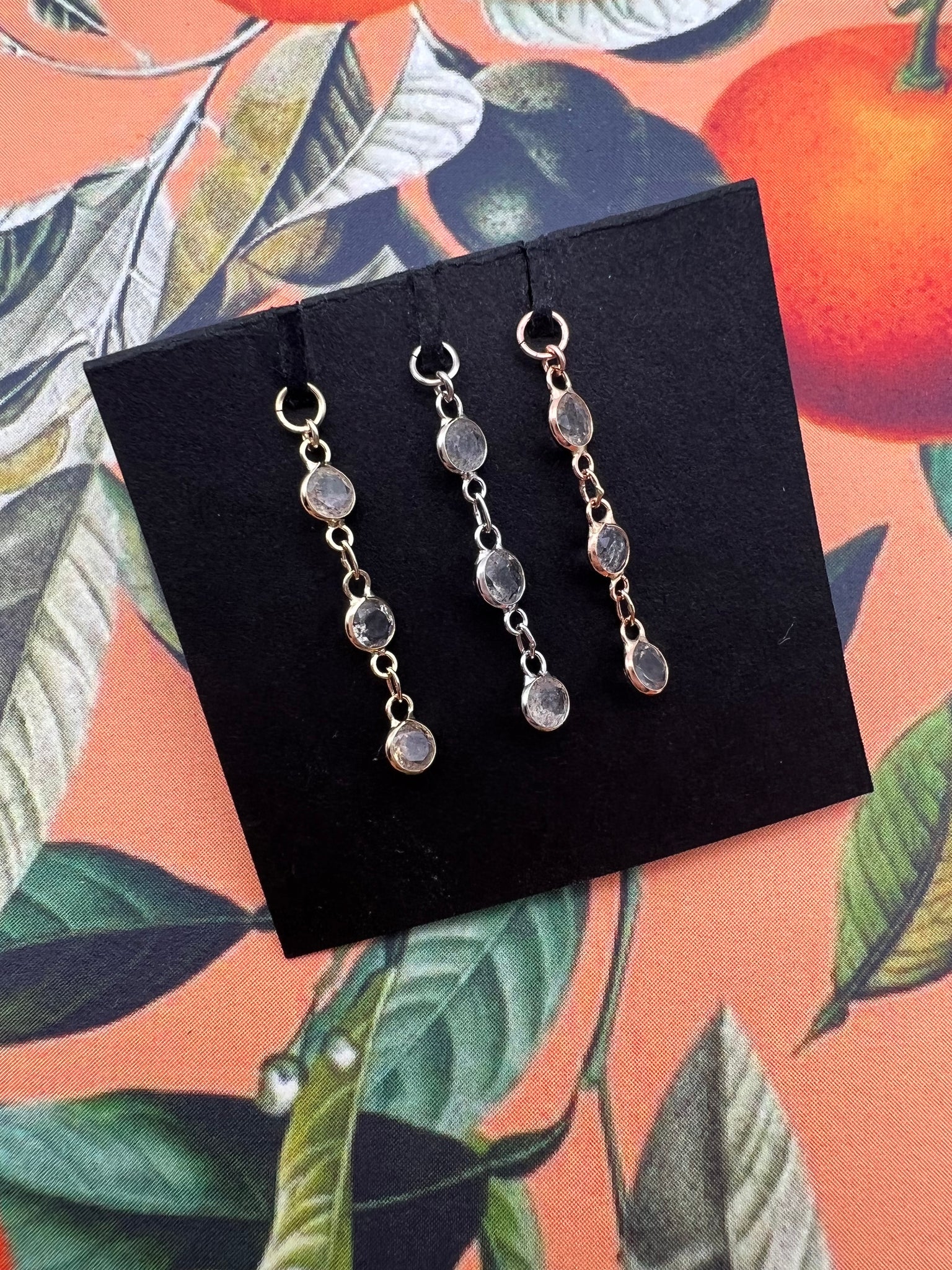 Our Labradorite Love Charm comes in 14k cinch bezel set at 20mm long and holds x3 3mm round Labradorite gem stones. Available in all 3 golds!