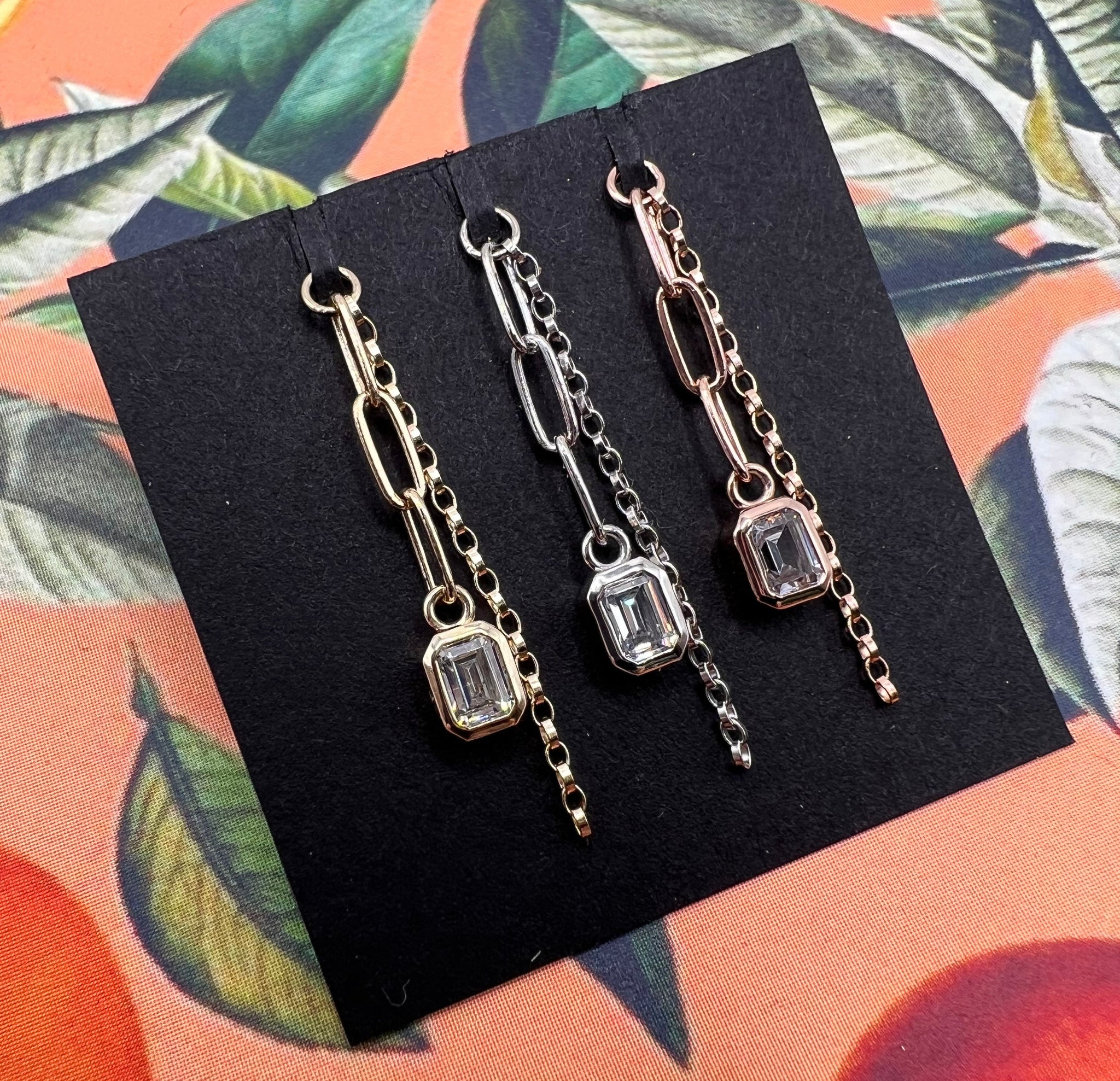 This piece was made in honor of my late Mother Michelle Marie. She loved chunky Emerald Cut Stones and she always loved our Gem Charms. So with this piece we stepped it up a notch and made this Emerald Step Cut White CZ set in 14k Yellow, White and Rose Gold. The Stone its self is 4x3mm in size. The length on this piece is 28mm not including the jump ring. The chains used to make this piece are the 2.5mm Elongated Cable Chain and the 1.5mm Oval Rolo Chain. Together, making one of my most personal pieces. We hope you all pick one up. All of the profits of this piece will go to the Cholangiocarcinoma Foundation. A foundation dedicated to educating the public and to raise funds towards the research of the rare Bile Duct Cancer that took my mother.