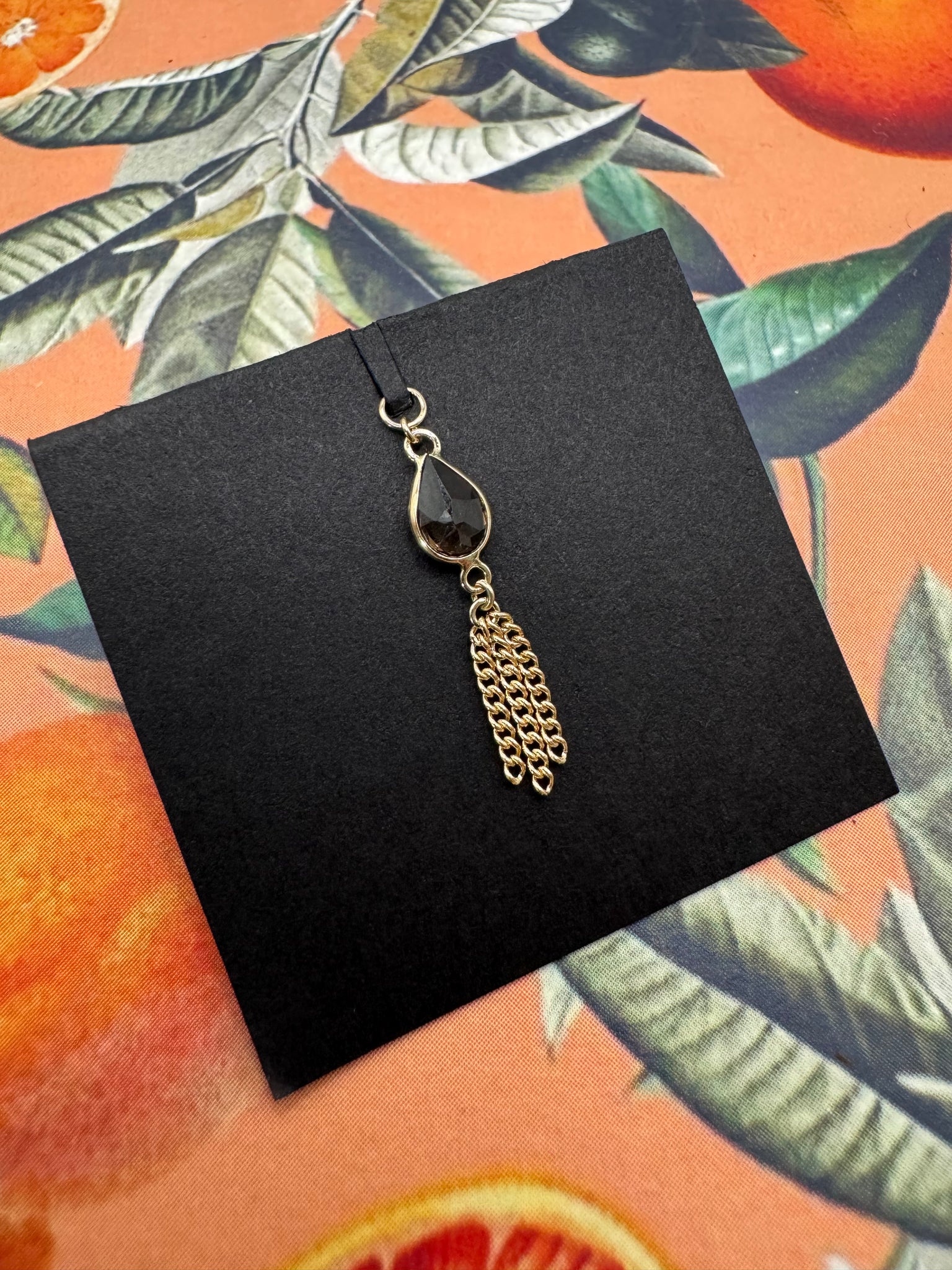 Here we have Navel Tassels but we’ve seen them everywhere on the body! A Large 5x7mm Pear Gem Charm with a Triple 1.1mm Diamond Cut Curb Chain Tassel with a total length of 24mm.