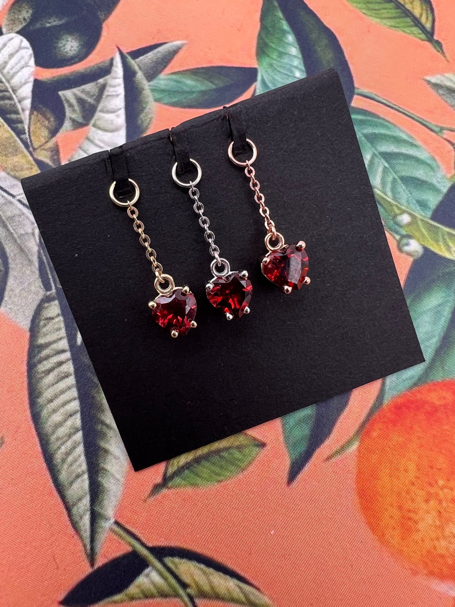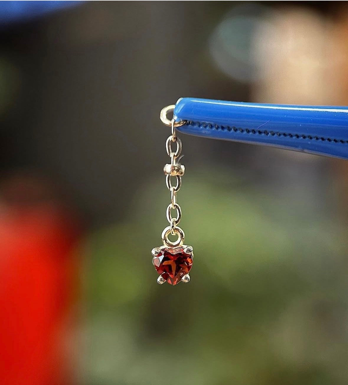 Roja is a 5mm Heart Shaped Mozambique Garnet and perfect for any where your clients set up needs an extra bit of love! Roja is on a 9mm Flat Oval Cable Chain and has a little bit of length to it! Roja is perfect for Navels, Nipples, Lobes, Back Side Conch Piercings and any where you can pretty much think of. These are going to be a crowd favorite Valentine’s season! They are set in 14k Gold per usual!