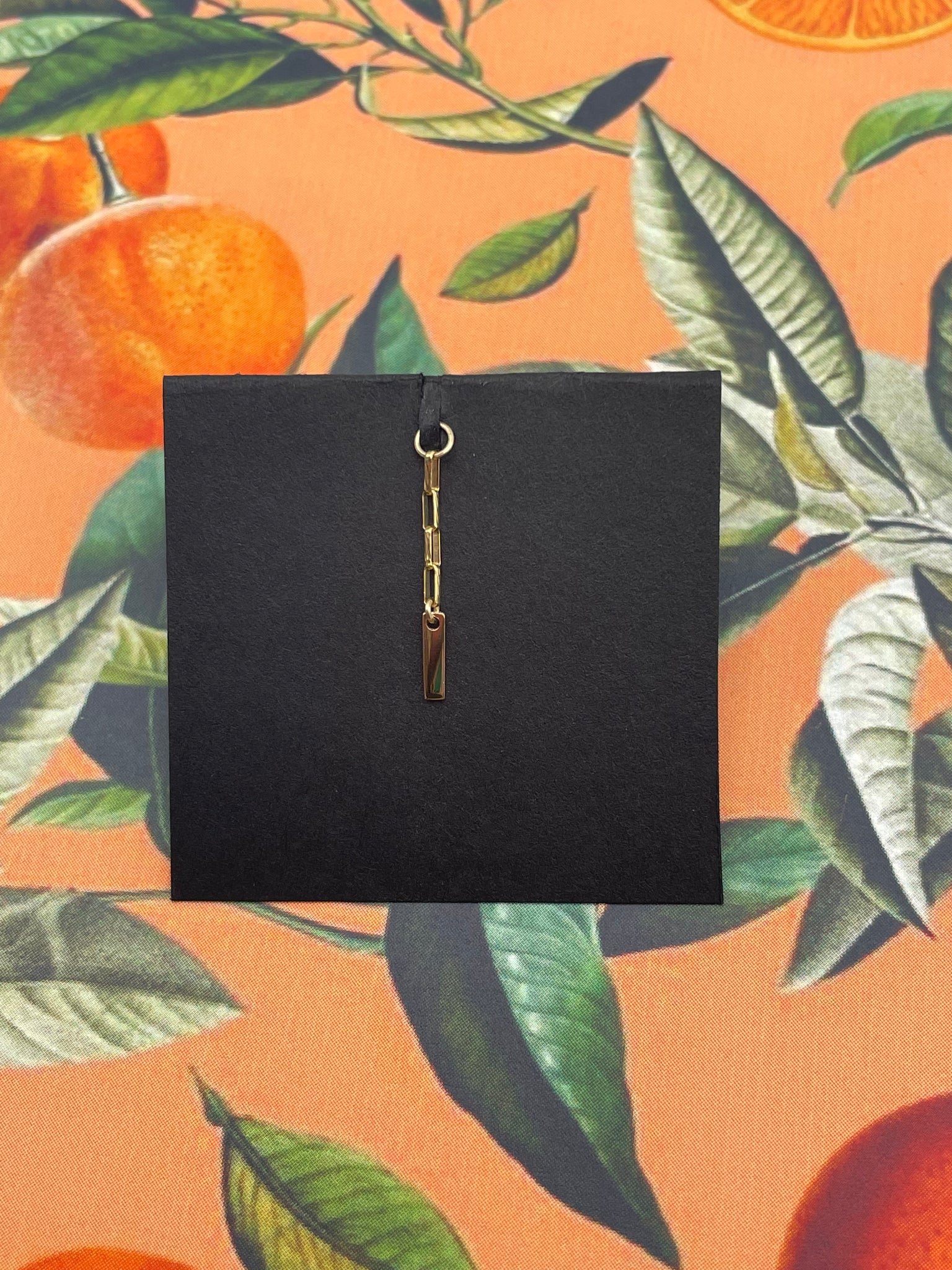 14k Solid Yellow Gold Bar measuring 6x1mm ahold a 1.5mm Long Rectangular Textured Paper Clip Chain.