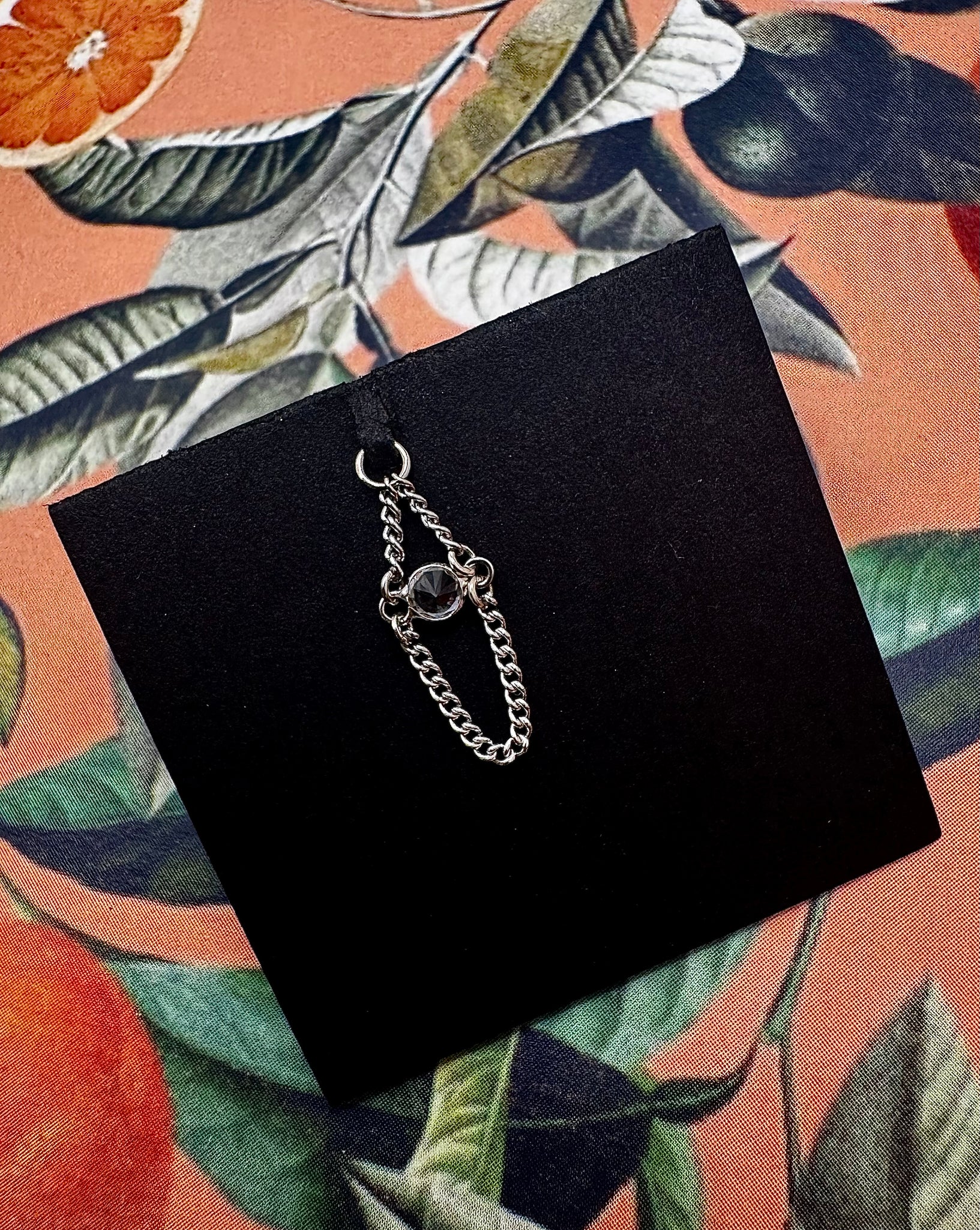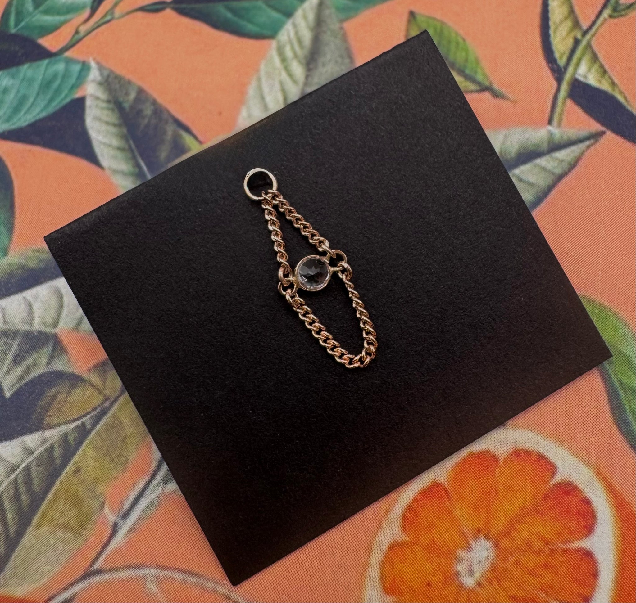 This little beauty is a 3mm Round Brilliant Cut Gemstone surrounded by a 1.2mm Curb Chain. All done in 14k Gold.