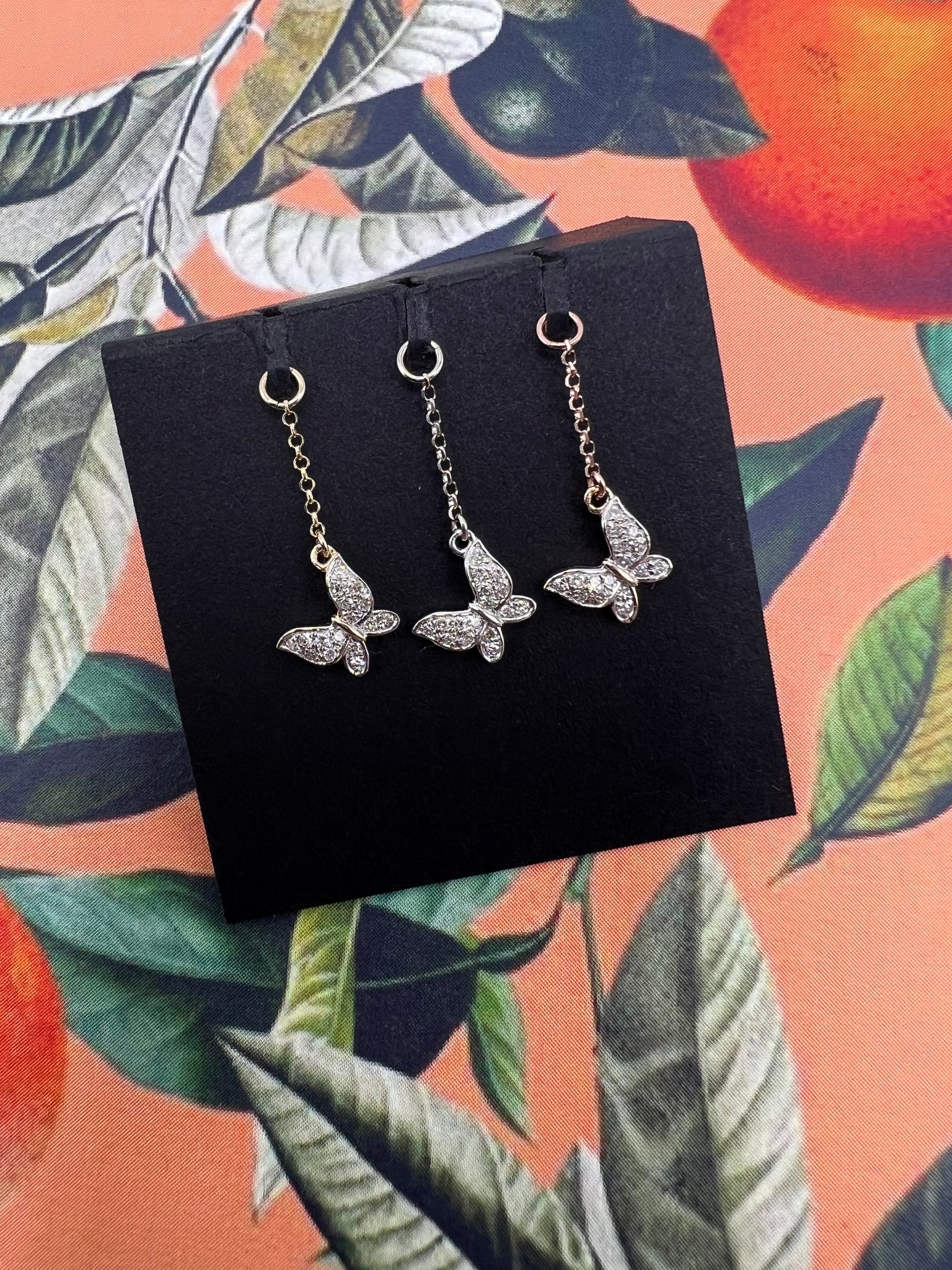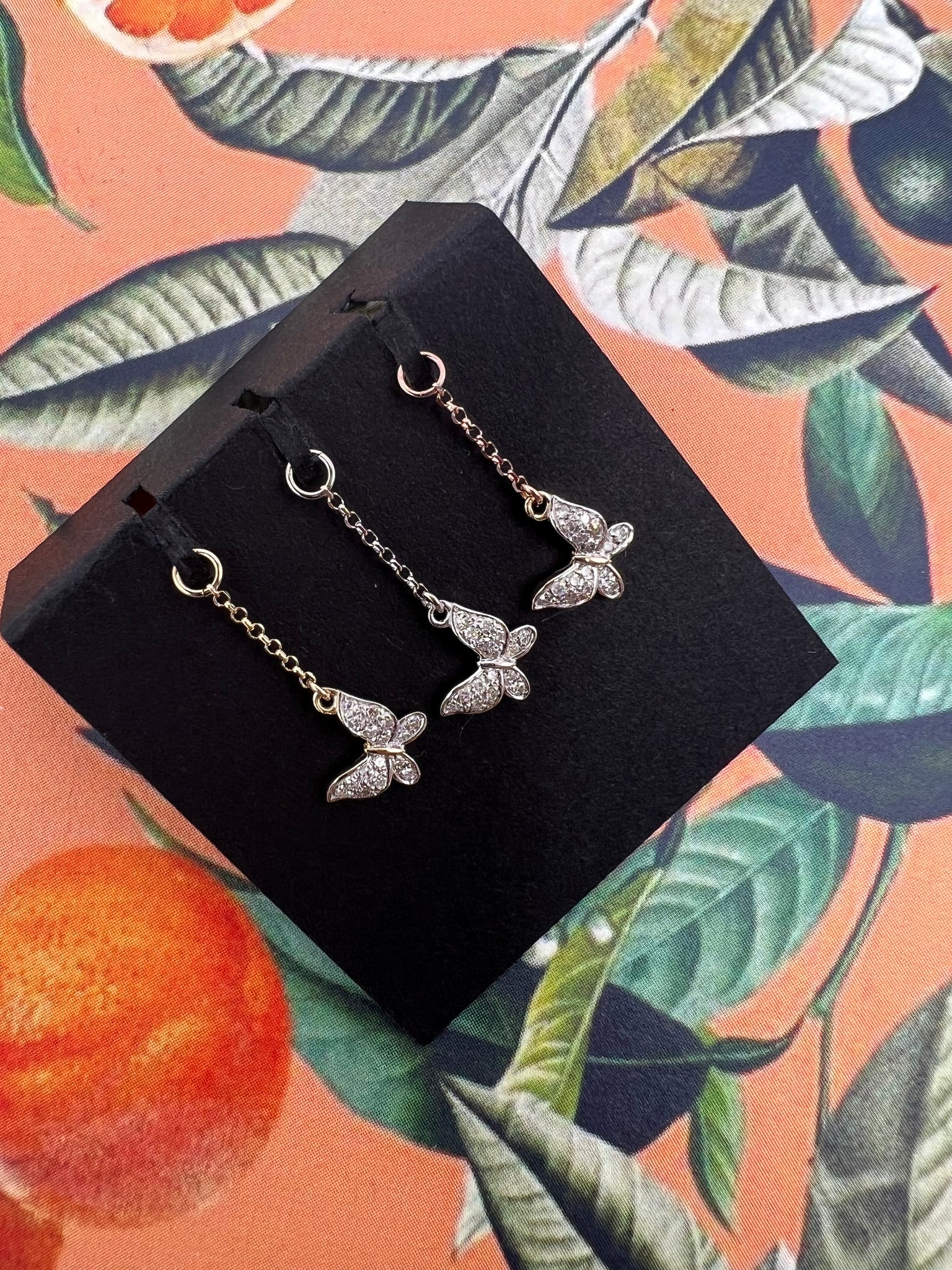 You’re my butterfly! This butterfly is 14k Solid Gold. Featuring Earth Conscious, Lab Grown, make you feel good about wearing it Diamonds! The wing span on these beauties is 7x5mm and is on a 1mm Diamond Cut Rolo Chain. These can fit up to 12g and ready to come and dance with you.