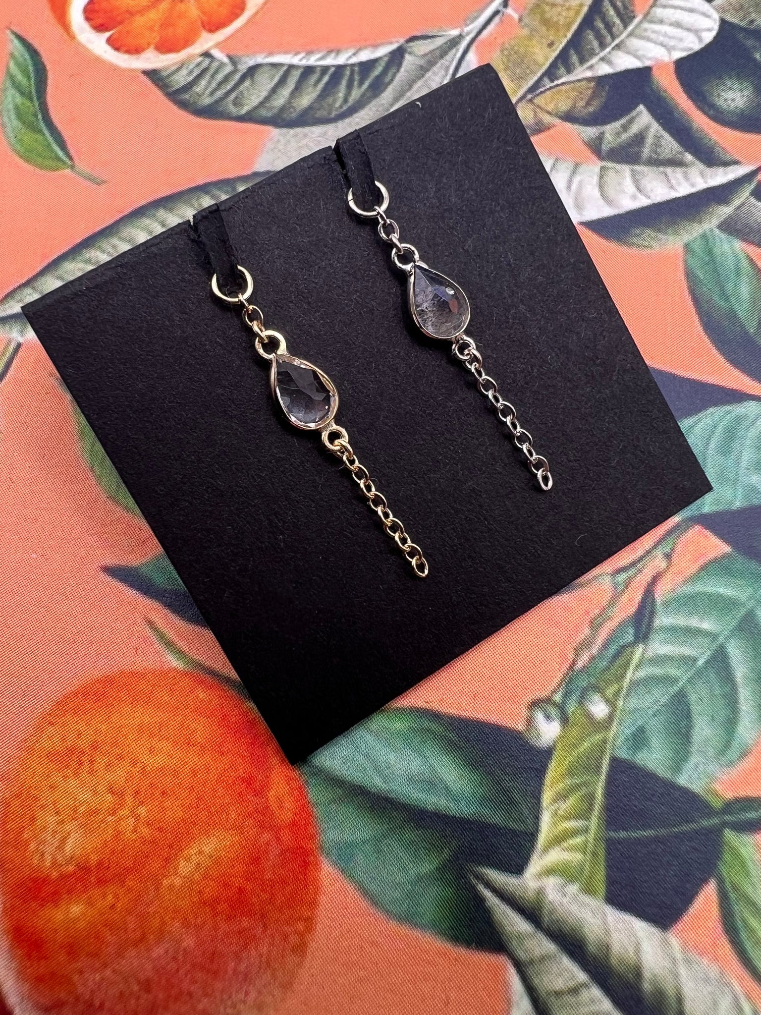 This piece is a 5x7mm Pear Gem Charm with a 1.5mm Cable Chain. Total length is 24mm. This is a Genuine Gem Stone. Cable Chain replaced the Starburst Chain.