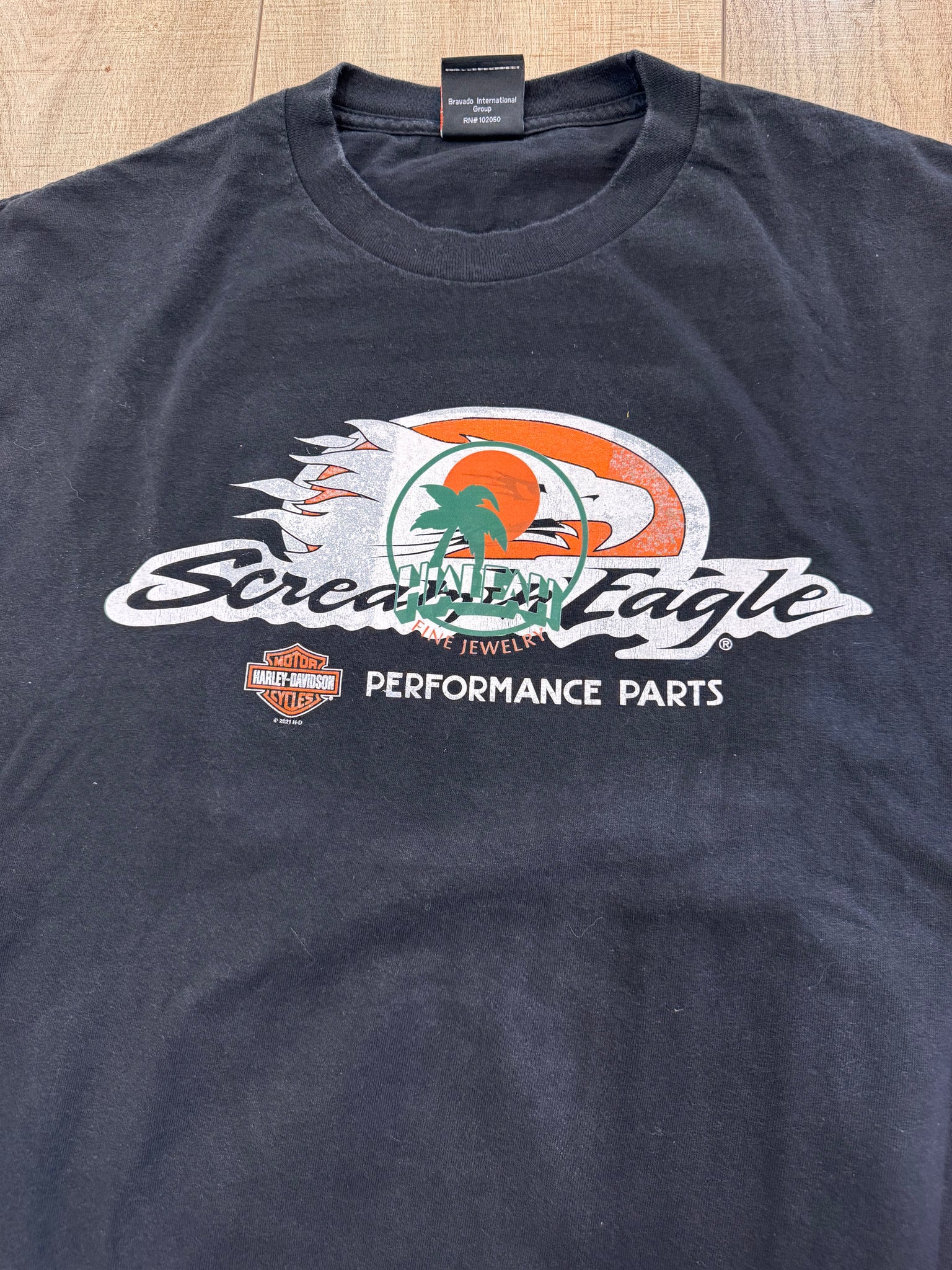 This is a vintage Harley Davidson shirt with our HFJ printed on the front. It comes from the Miami location.
