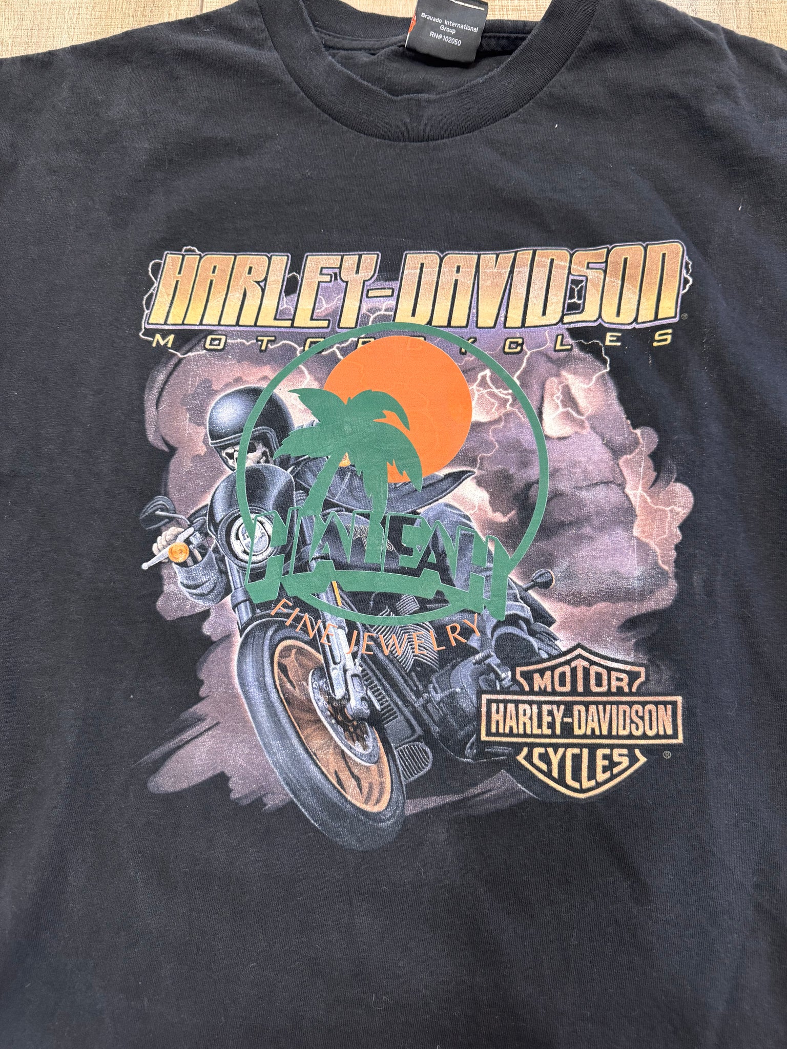 Vintage Harley Davidson shirt customized with our HFj logo. Fits like a vintage XL, more of a small XL/ large Large.